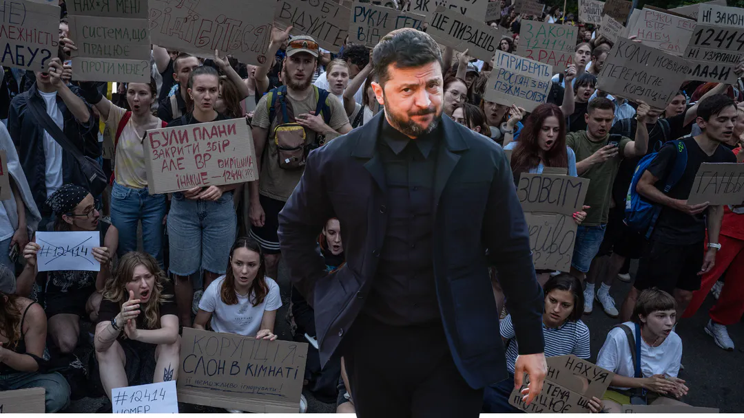 „Преживявали сме това и преди“, „Стига с фарса“, „Не за това загина баща ми“ – с такива лозунги вечерта на 22 юли хиляди украинци излязоха на протест срещу закон, който лиши най-важните антикорупционни органи в страната от тяхната независимост и доведе до най-голямата политическа криза от началото на руската инвазия.