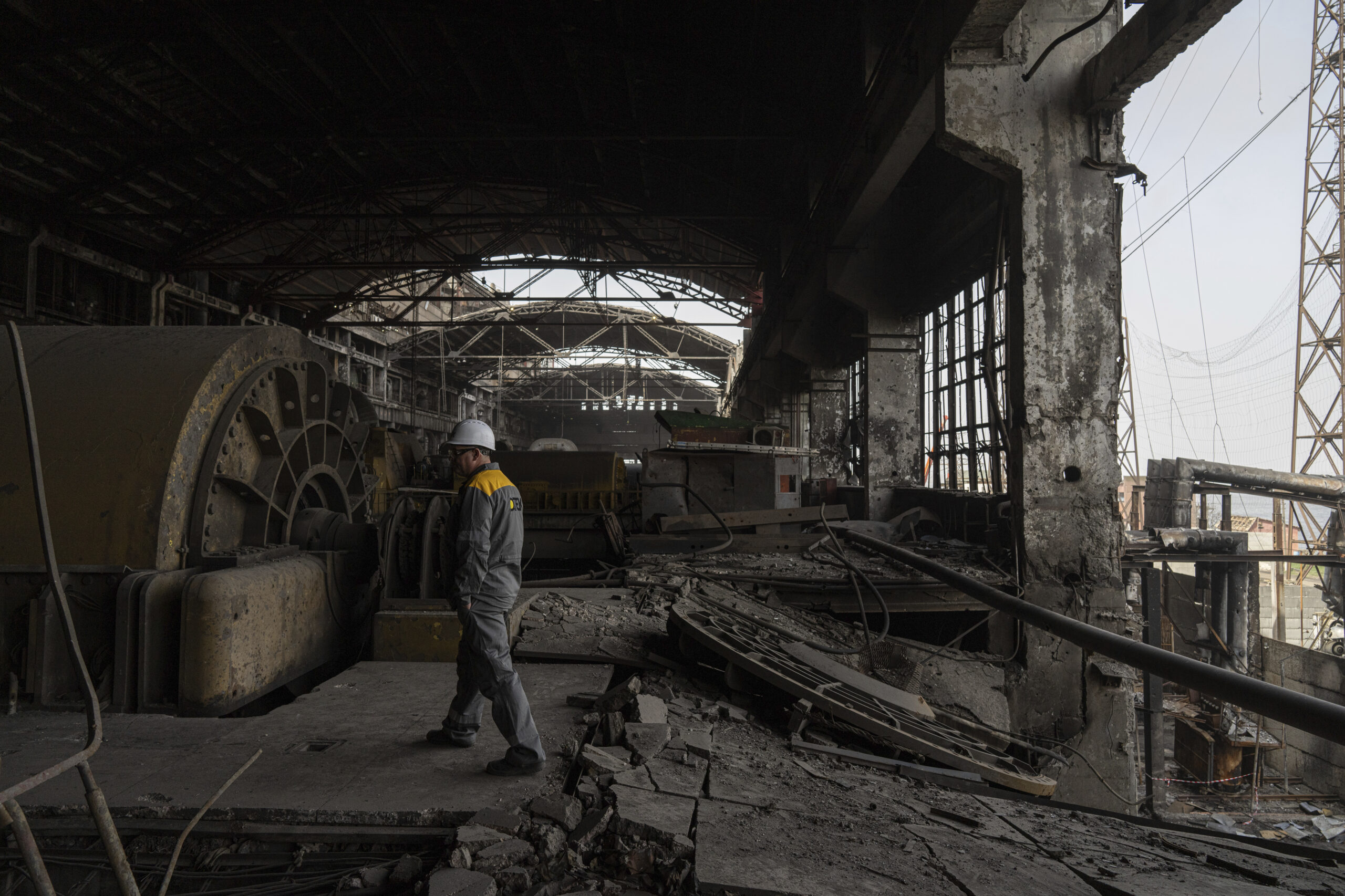 A worker walks inside DTEK's power plant which was destroyed by a Russian missile attack in Ukraine, on Monday, April 1, 2024. Russia is attacking Ukraine’s energy sector with renewed intensity and alarming accuracy, signaling to Ukrainian officials that Russia is armed with better intelligence and fresh tactics in its campaign to annihilate the country’s power generation capacity. (AP Photo/Evgeniy Maloletka)